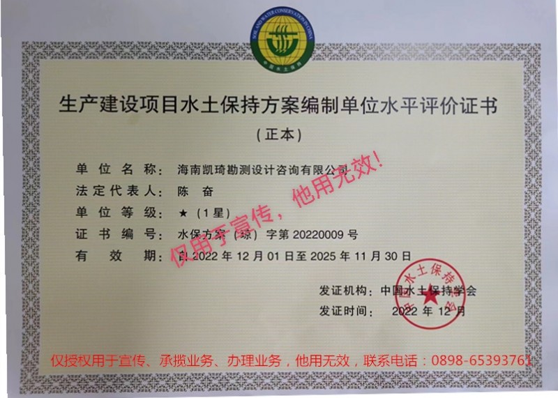 生产建设项目水土操持方案编制单位水平评价证书